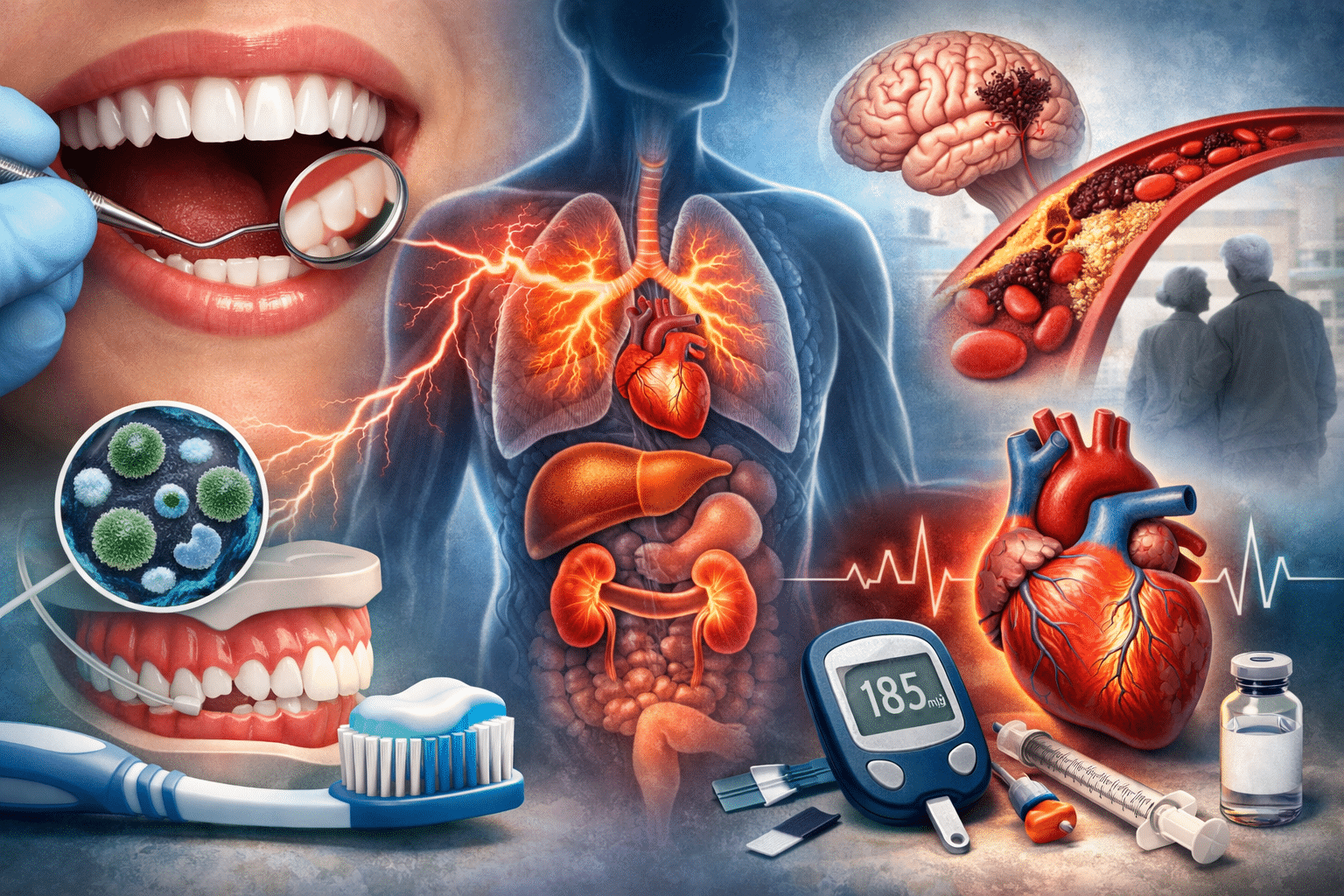 Para usuarios técnicos: Las interacciones entre la salud bucal y enfermedades crónicas requieren una atención multidisciplinaria. Los procesos inflamatorios iniciados por infecciones orales pueden exacerbar condiciones sistémicas existentes, actuando como desencadenantes de mecanismos patológicos complejos.